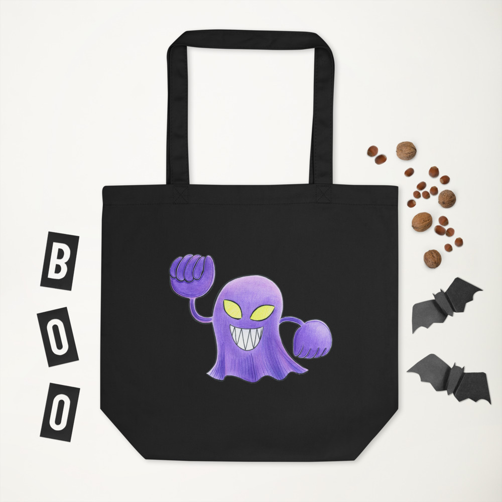 There’s nothing trendier than being eco-conscious! This features a hand drawn design of my rubber hose ghost Pokemon OC Mean Spirit! This roomy bag fits groceries, books, and so much more.
